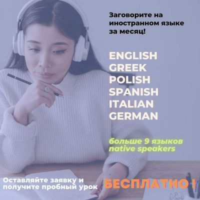 Tekst ogłoszenia w języku polskim: Delfi oferuje wysokiej jakości naukę języków obcych, matematyki, fizyki, programowania i sztuki dla wszystkich grup wiekowych. Szkolenie odbywa się indywidualnie w grupach i mini grupach ze specjalistami uczelni wyższych, którzy bronili swoich prac doktorskich i teraz mają doświadczenie na poziomie państwowym.